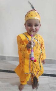 जन्माष्टमी को लेकर बच्चों में खासा के्रज देखा जा रहा है। परिजन अपने बच्चों को कान्हा के रूप में सजा रहे हैं। फरीदाबाद में भी प्रसिद्ध कवियत्री डॉ0 सुप्रिया ढांडा ने अपने भतीजे यशवर्धन सिंह को छोटे कान्हा के रूप में सजाया है तथा फोटो में यशवर्धन छोटे बाल गोपाल- नन्हे कान्हा का रूप लिए हुए हैं। डॉ0 सुप्रिया ढांडा ने बताया कि उनके भतीजा यशवर्धन व भतीजी मिशिका दोनों कान्हा और राधा की ड्रेस लेकर आए हैं और जन्माष्टमी के लिए काफी उत्साहित हैं। वह दोनों शाम को बुआ के साथ मंदिर जायेंगे ओर सुंदर झांकियां देखेंगे।