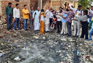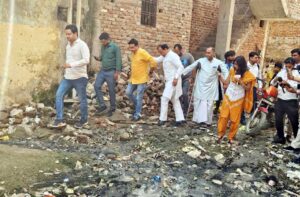 फोटो- फरीदाबाद विधानसभा क्षेत्र में नरकीय जीवन जी रहे लोगों की दशा दिखाते वरिष्ठ कांग्रेसी नेता सुमित गौड।