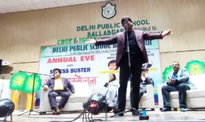 फोटो-डीपीएस बल्लभगढ़ के वार्षिक उत्सव में अपनी कविताओं से लोट-पोट करते प्रसिद्व कवि दिनेश रघुवंशी।