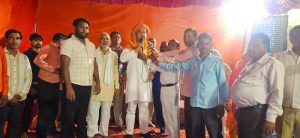 फोटो-महर्षि वाल्मीकि जयंती समारोह में वरिष्ठ कांग्रेस नेता सुमित गौड का स्वागत करते लोग।